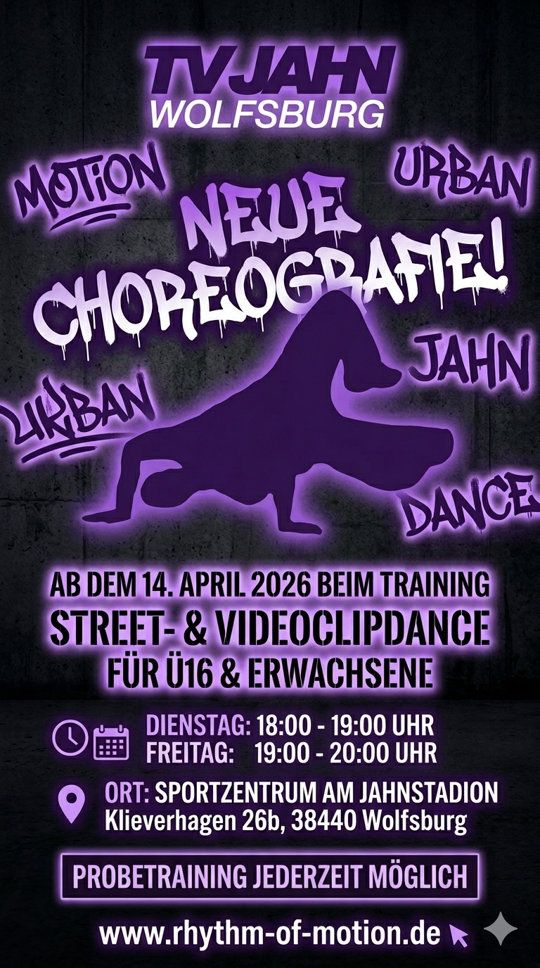 Hast du Lust auf Musik, Bewegung und eine tolle Gemeinschaft? Bei uns steht der Spaß absolut im Vordergrund. Egal, ob du schon Tanzerfahrung hast oder einfach mal etwas Neues ausprobieren möchtest – wir laden dich herzlich ein, Teil unserer Tanzfamilie zu werden. Beim TV Jahn Wolfsburg und dem Velpker SV schaffen wir Ort, an dem du dich rundum wohlfühlen und den Alltag für einen Moment vergessen kannst.